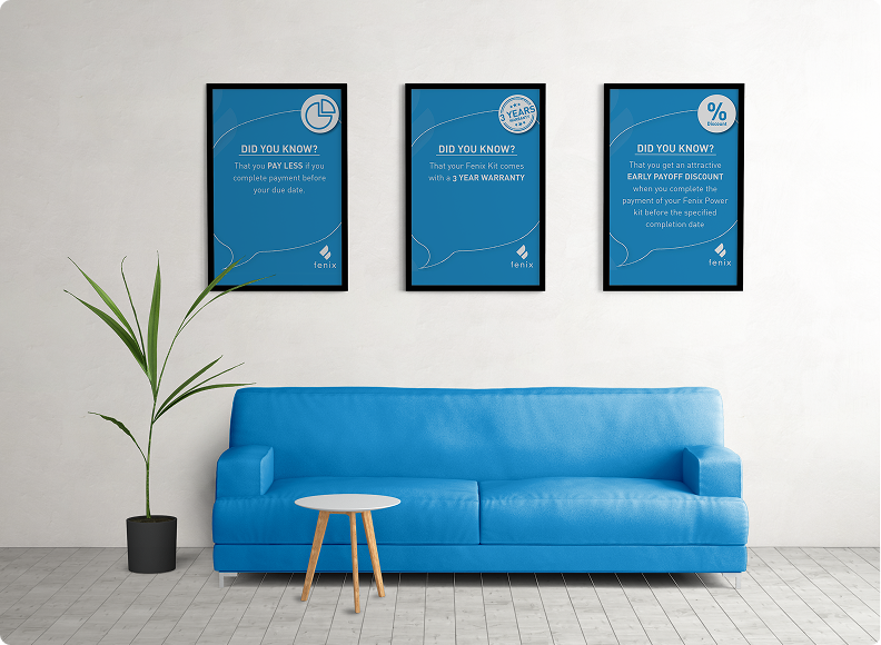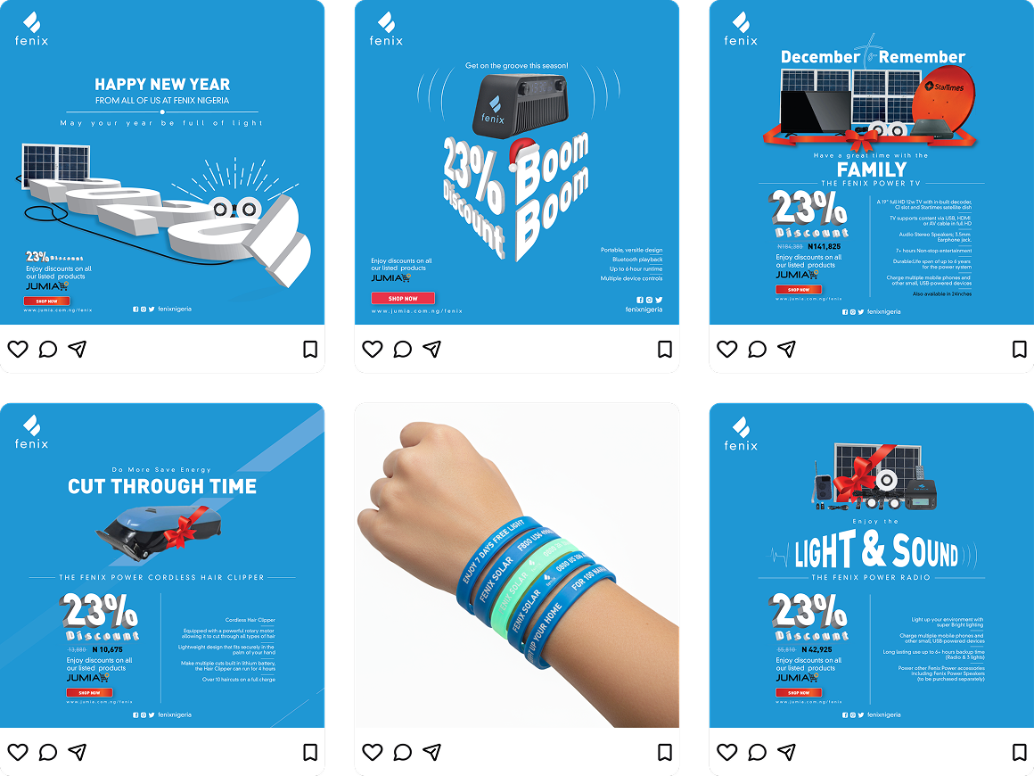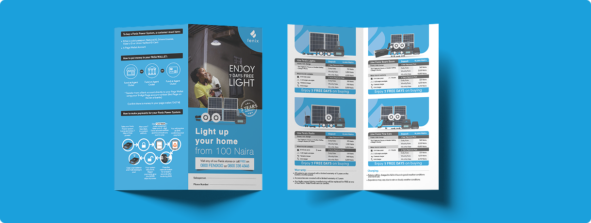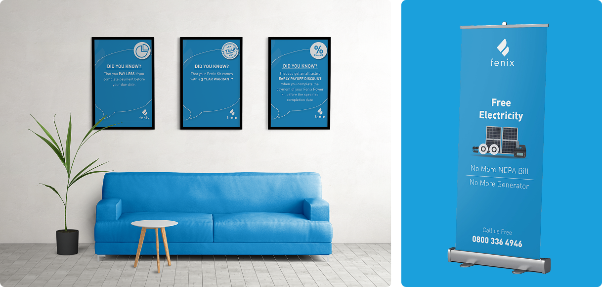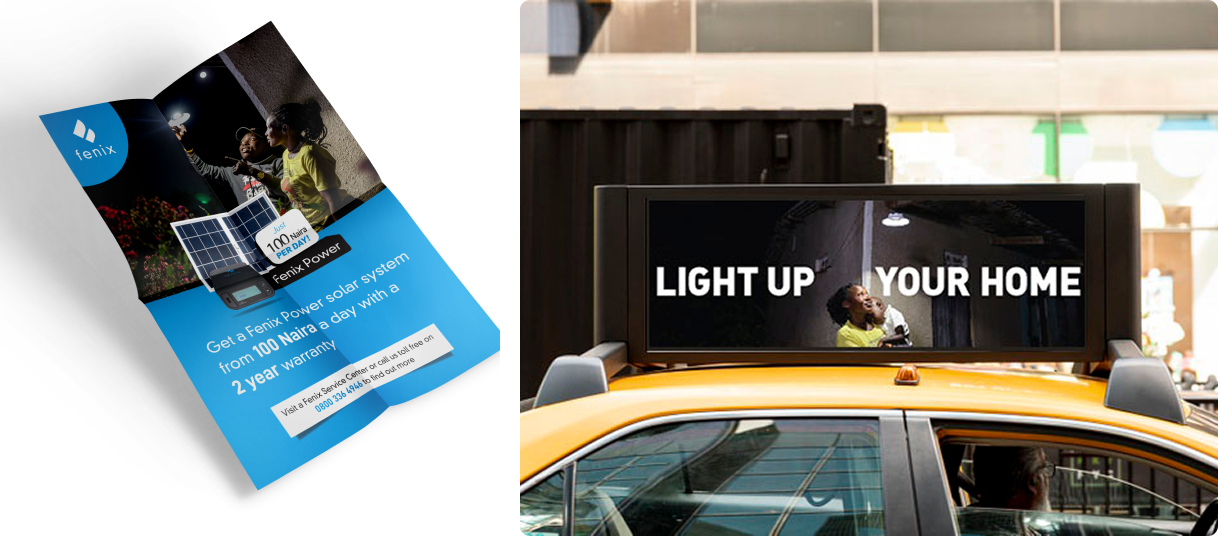 The goal was to ensure an impactful debut into the Nigerian market. We worked with the Fenix team to develop a comprehensive visual communication strategy and materials to drive it’s impact across urban and rural Nigeria.